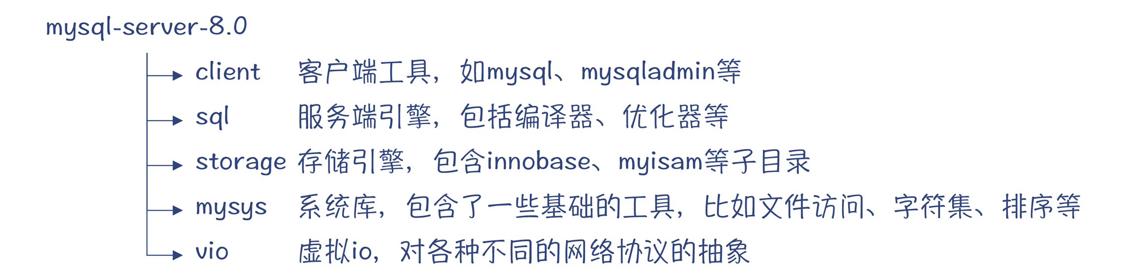 源代码里的主要目录及其作用如下,我们需要分析的代码基本都在sql目录下,它包含了编译器和服务端的核心组件。