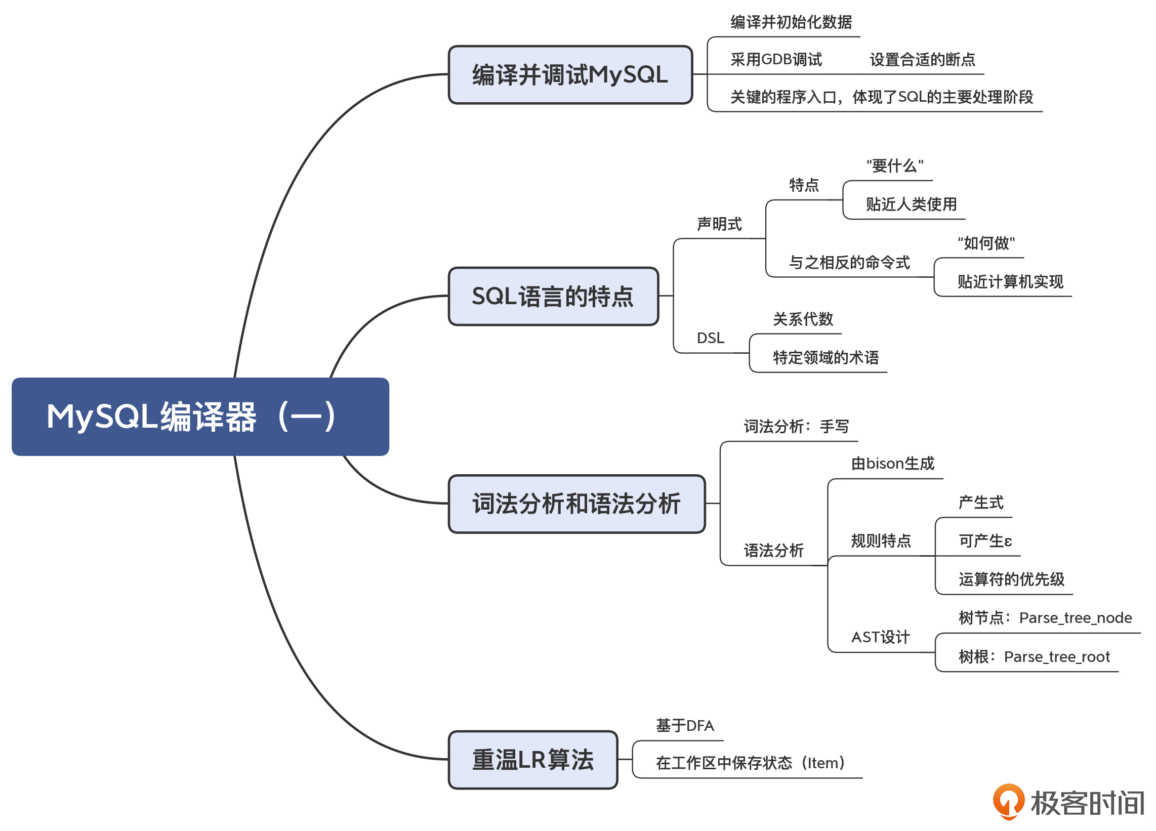 那么,数据库系统是如何使用编译技术的呢?接下来,我就会花两讲的时间,带你进入到MySQL的内部,做一次全面的探秘。