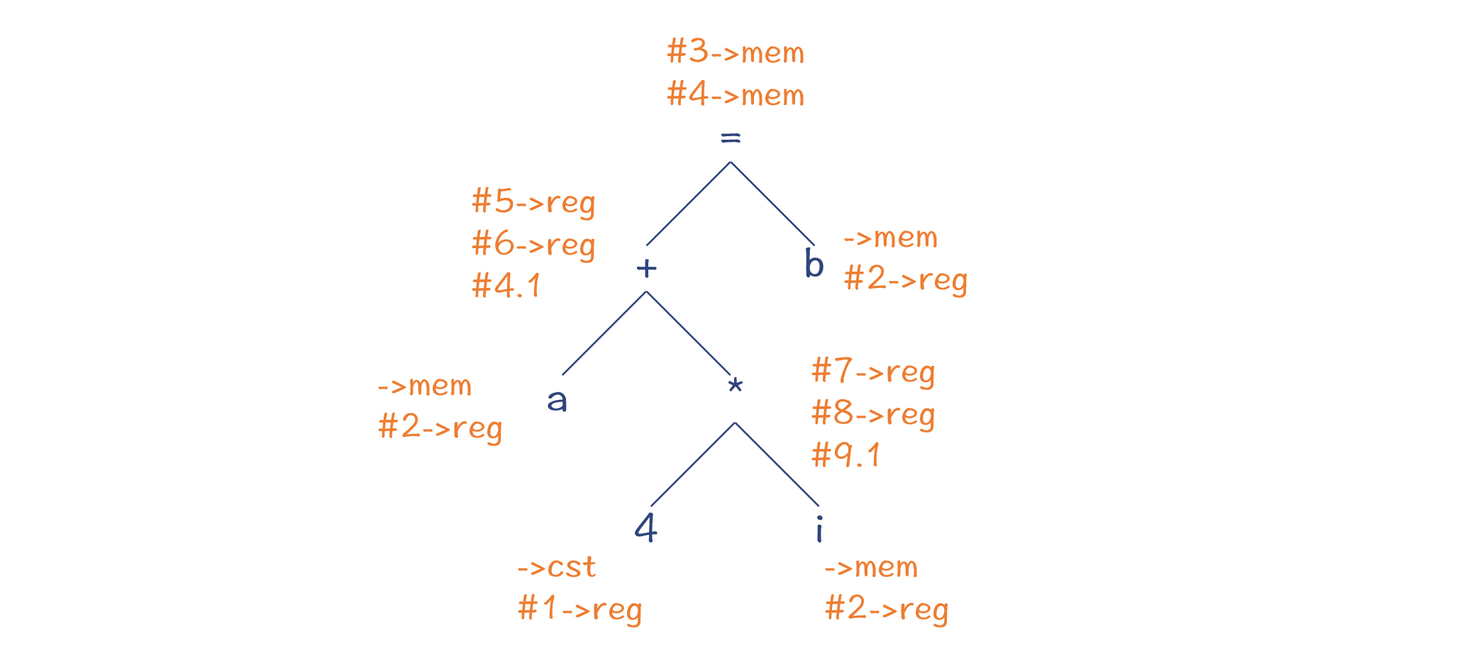 那么,我们要如何给这个表达式生成指令呢?