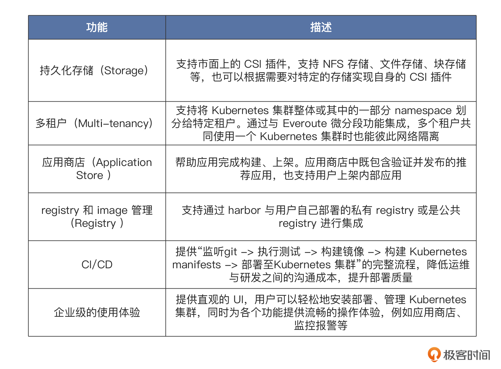 除了上述功能,CaaS还需要具备以下功能,我同样梳理了表格。-