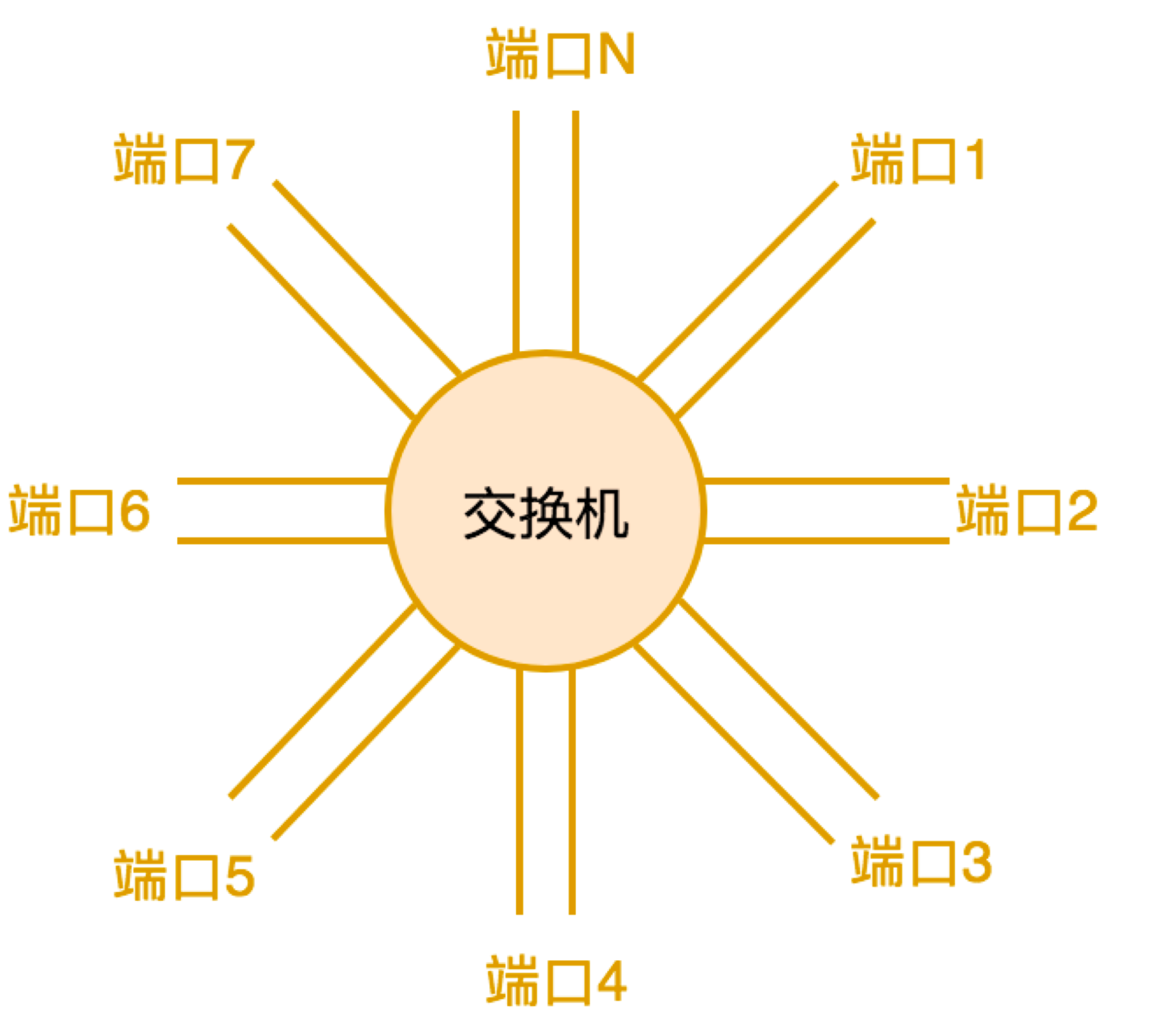 一个局域网可以简化理解为由若干台交换机连接所有的计算机设备。而交换机同样也可以看做是由一个负责路由算法的计算机,和若干网络端口构成,如下图所示: