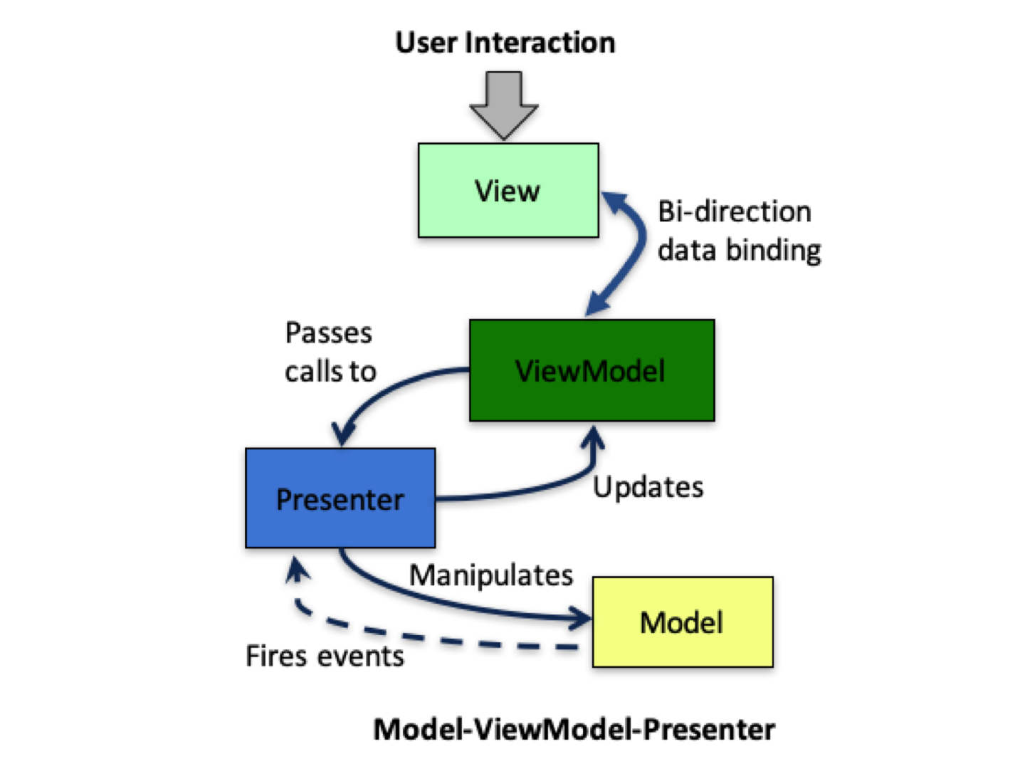 所以解决思路自然是让 Controlller 层来做,这样就变成了 MVP 模式。 但是我们又不是标准的 MVP,因为 Presenter 层更新界面(Update View)并不是操作 View,而是 ViewModel。