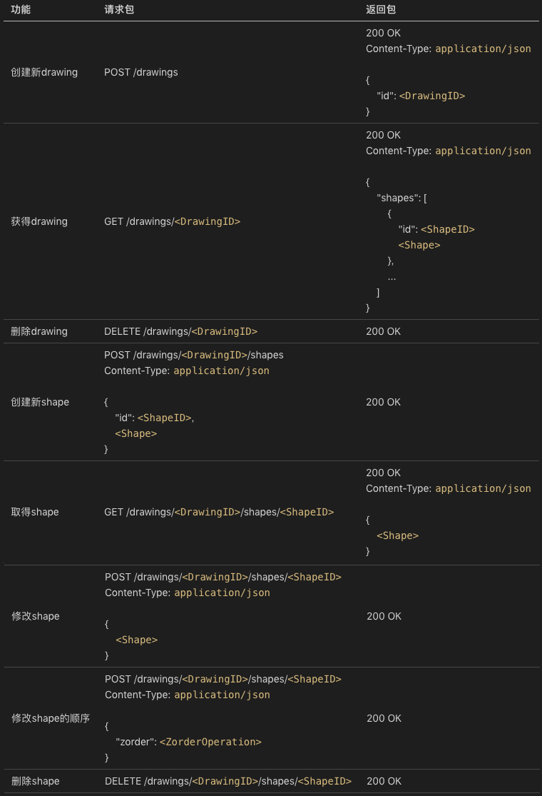 对于网络服务程序(service),它的使用界面是网络协议。前面我们在 [“画图” 程序实战(四)]这一讲中也有定义过画图服务端的网络协议。如下: