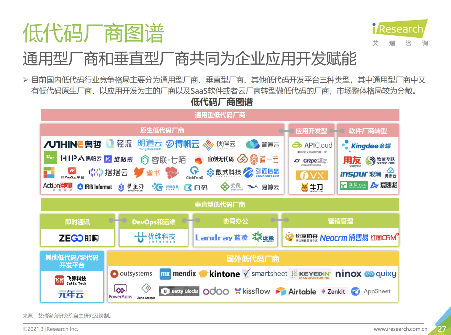 《艾瑞咨询 -2021 年低代码行业研究报告:化繁为简》原文在这里。