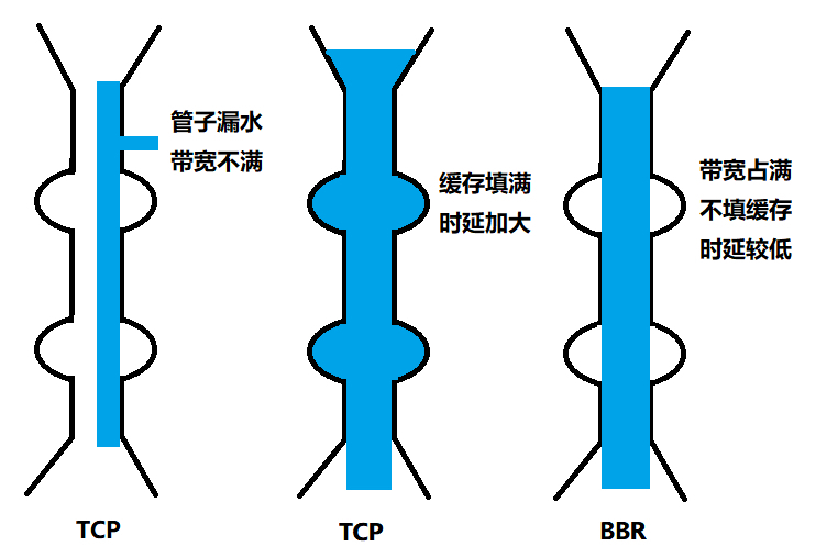 第二个问题是TCP的拥塞控制要等到将中间设备都填充满了,才发生丢包,从而降低速度,这时候已经晚了。其实TCP只要填满管道就可以了,不应该接着填,直到连缓存也填满。