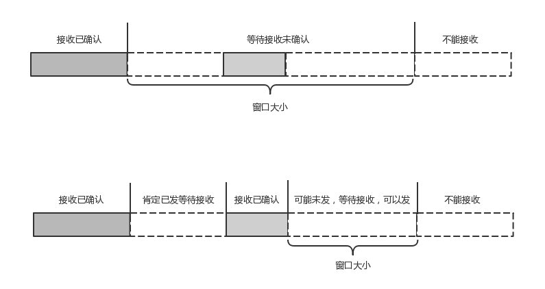 还记得吗?在TCP协议中,接收端的窗口的起始点是下一个要接收并且ACK的包,即便后来的包都到了,放在缓存里面,窗口也不能右移,因为TCP的ACK机制是基于序列号的累计应答,一旦ACK了一个序列号,就说明前面的都到了,所以只要前面的没到,后面的到了也不能ACK,就会导致后面的到了,也有可能超时重传,浪费带宽。