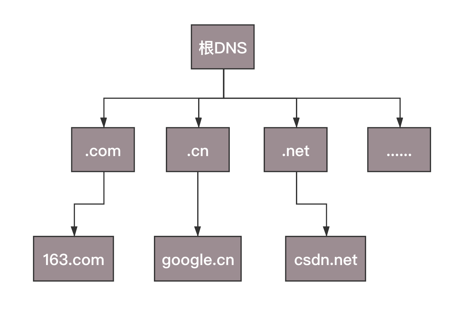 - 根DNS服务器 :返回顶级域DNS服务器的IP地址