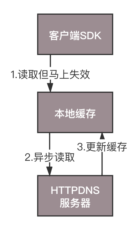 解析可以同步进行,也就是直接调用HttpDNS的接口,返回最新的记录,更新缓存;也可以异步进行,添加一个解析任务到后台,由后台任务调用HttpDNS的接口。