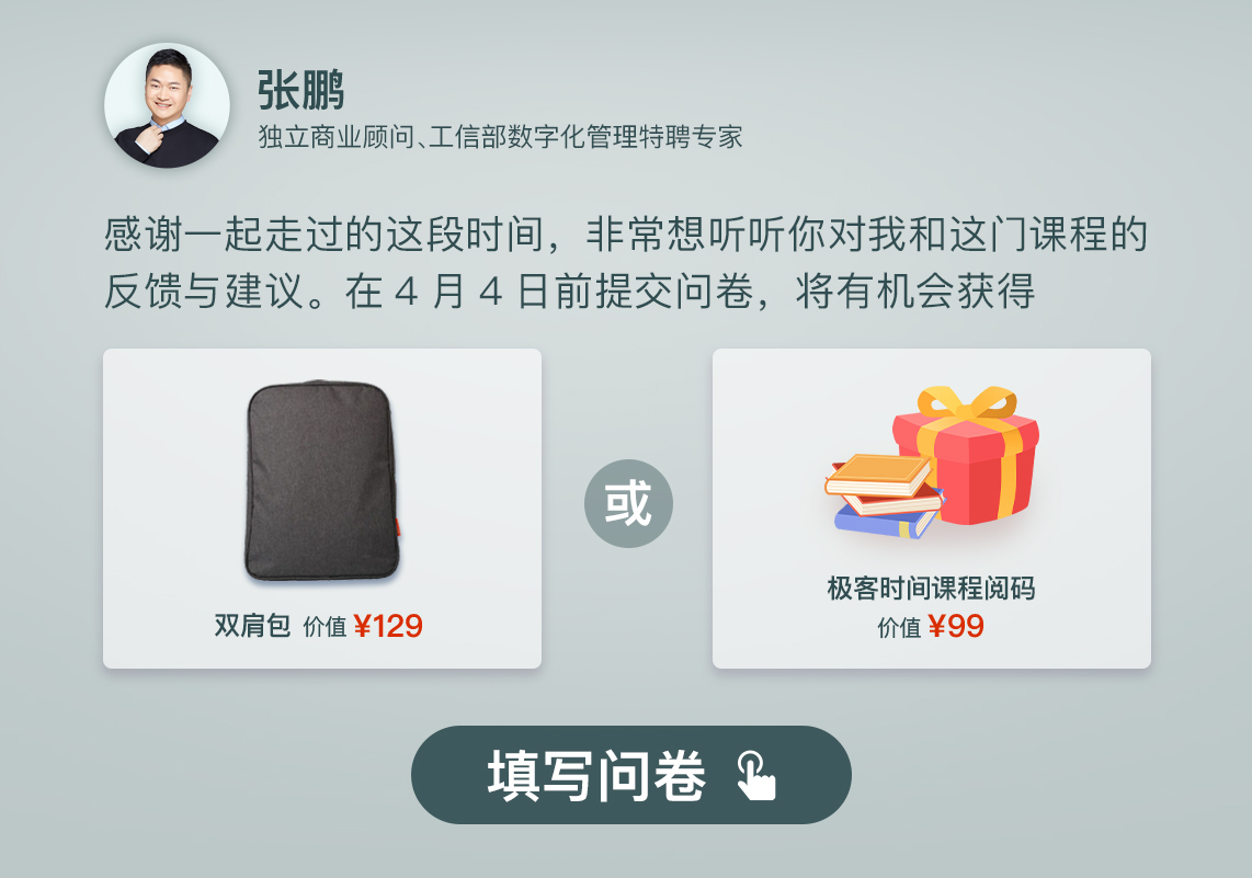 《跟着高手学复盘》课程结束了,这里有一份毕业问卷,题目不多,希望你能花两分钟填一下。十分期待能听到你说一说,你对这个课程的想法和建议。