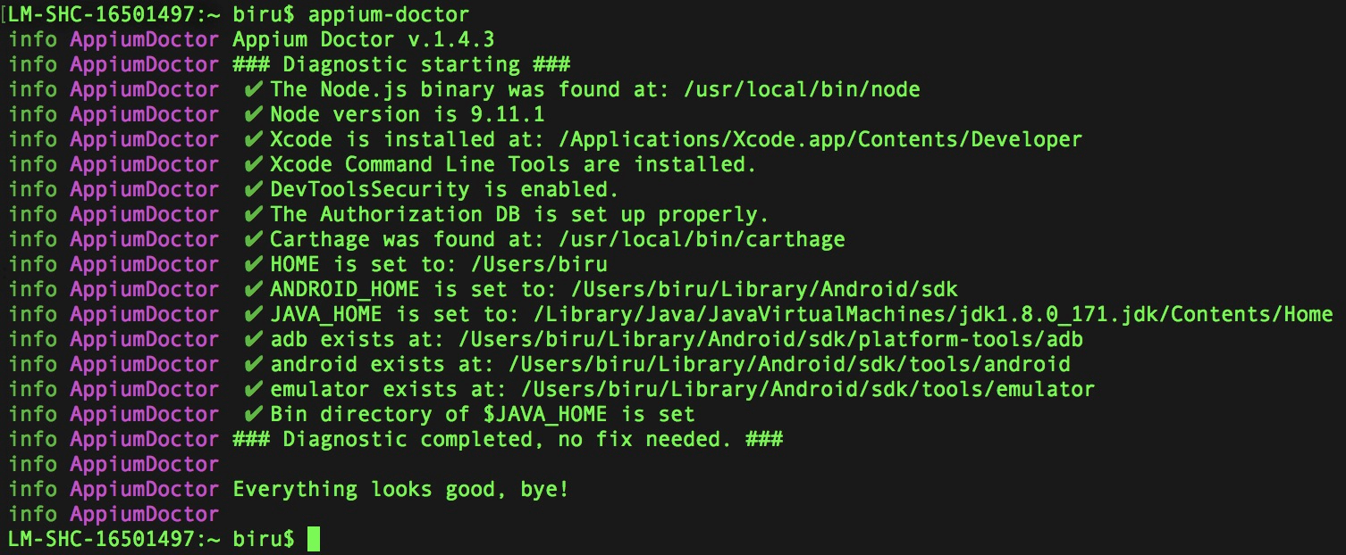图3 正常配置环境依赖后,appium-doctor返回的截图