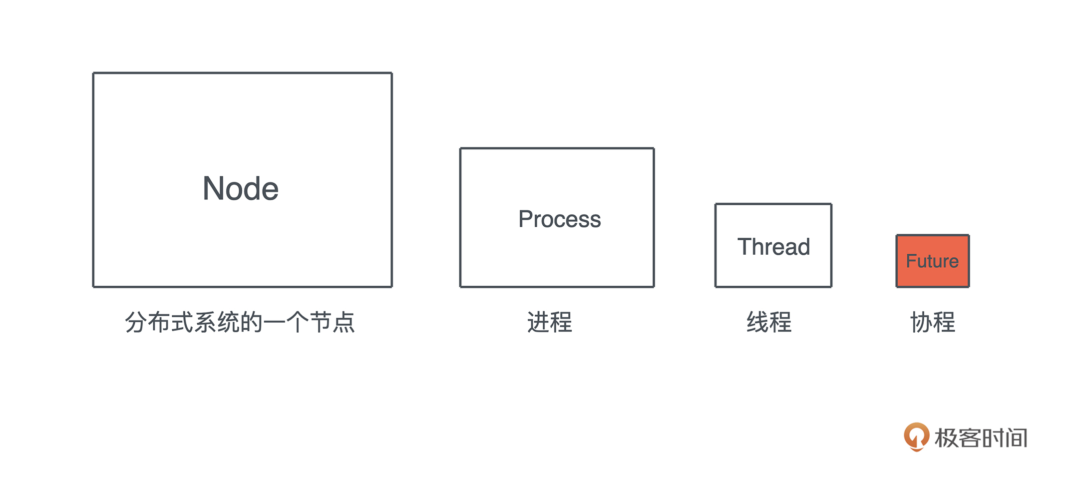 不过产生和运行并发任务的手段有很多,async/await 只是其中之一。在一个分布式系统中,并发任务可以运行在系统的某个节点上;在某个节点上,并发任务又可以运行在多个进程中;而在某个进程中,并发任务可以运行在多个线程中;在某个(些)线程上,并发任务可以运行在多个 Promise/Future/Goroutine/Erlang process 这样的协程上。