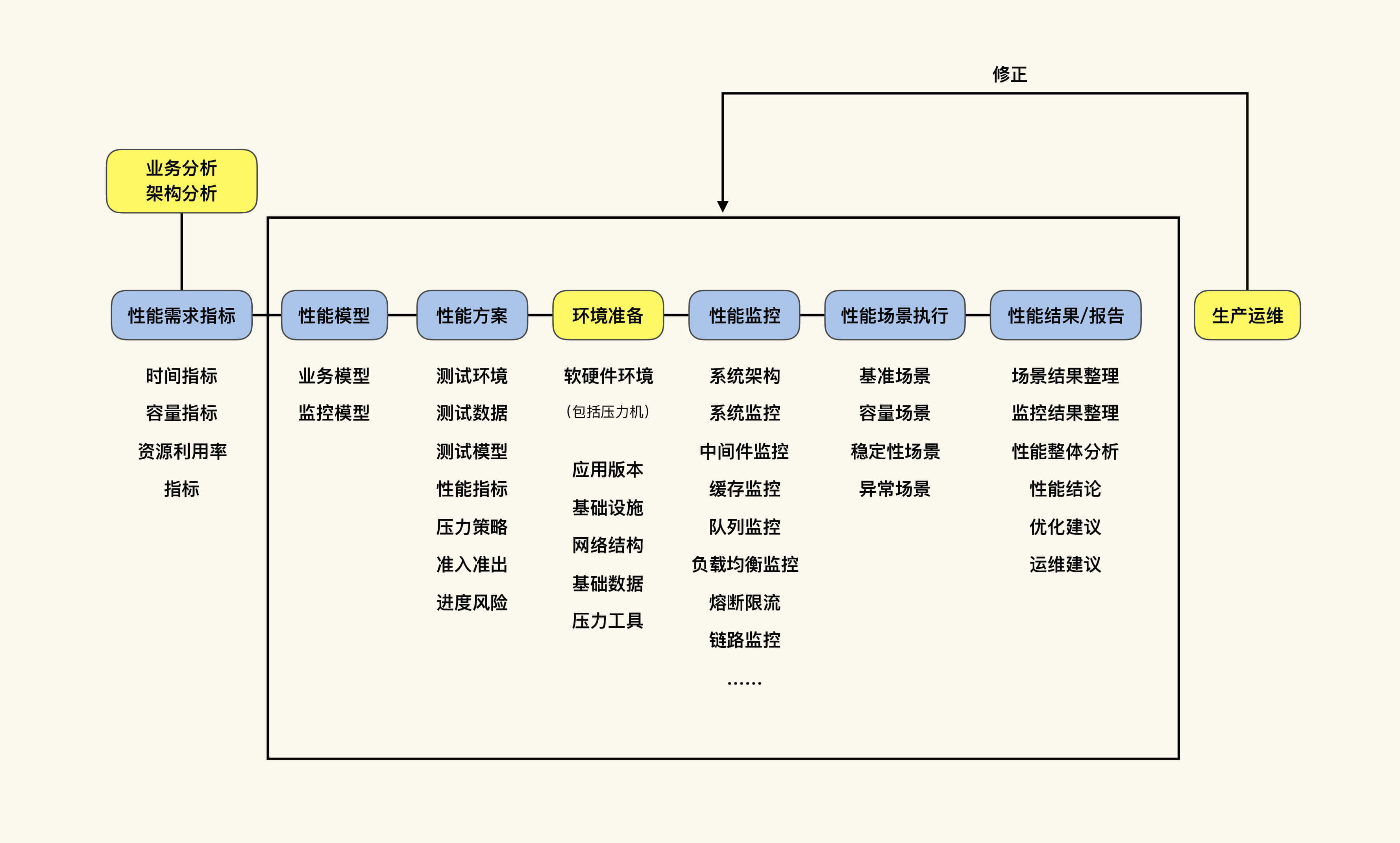 解决单接口基准场景中遇到的性能问题:也就是说,当我们在做单接口测试时,碰到了性能瓶颈一定要分析,这就涉及到了性能分析逻辑。所以,性能分析基本上可以分为两大阶段: