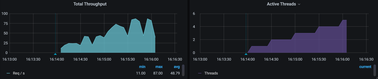 从图中,我们至少可以看出,1个压力线程大概会产生20TPS。