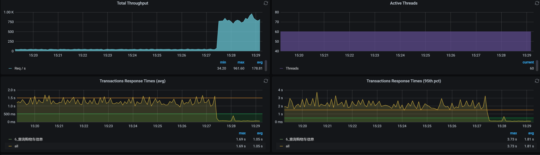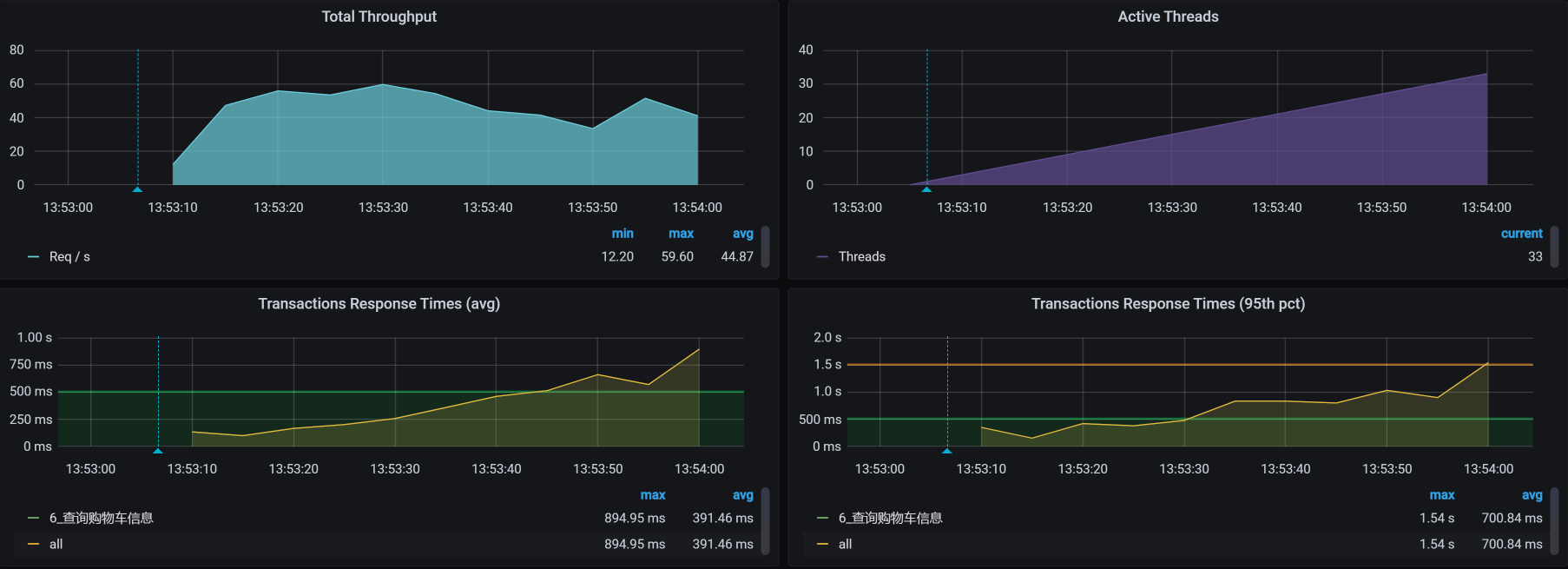 首先,我直接从cart服务的NodePort压进去,得到这样的结果: