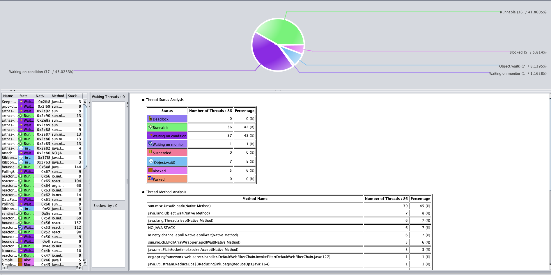 通过拆分时间,我们知道响应时间长的问题出在了Gateway上。下面我们就根据RESAR性能分析逻辑,老老实实开始分析。