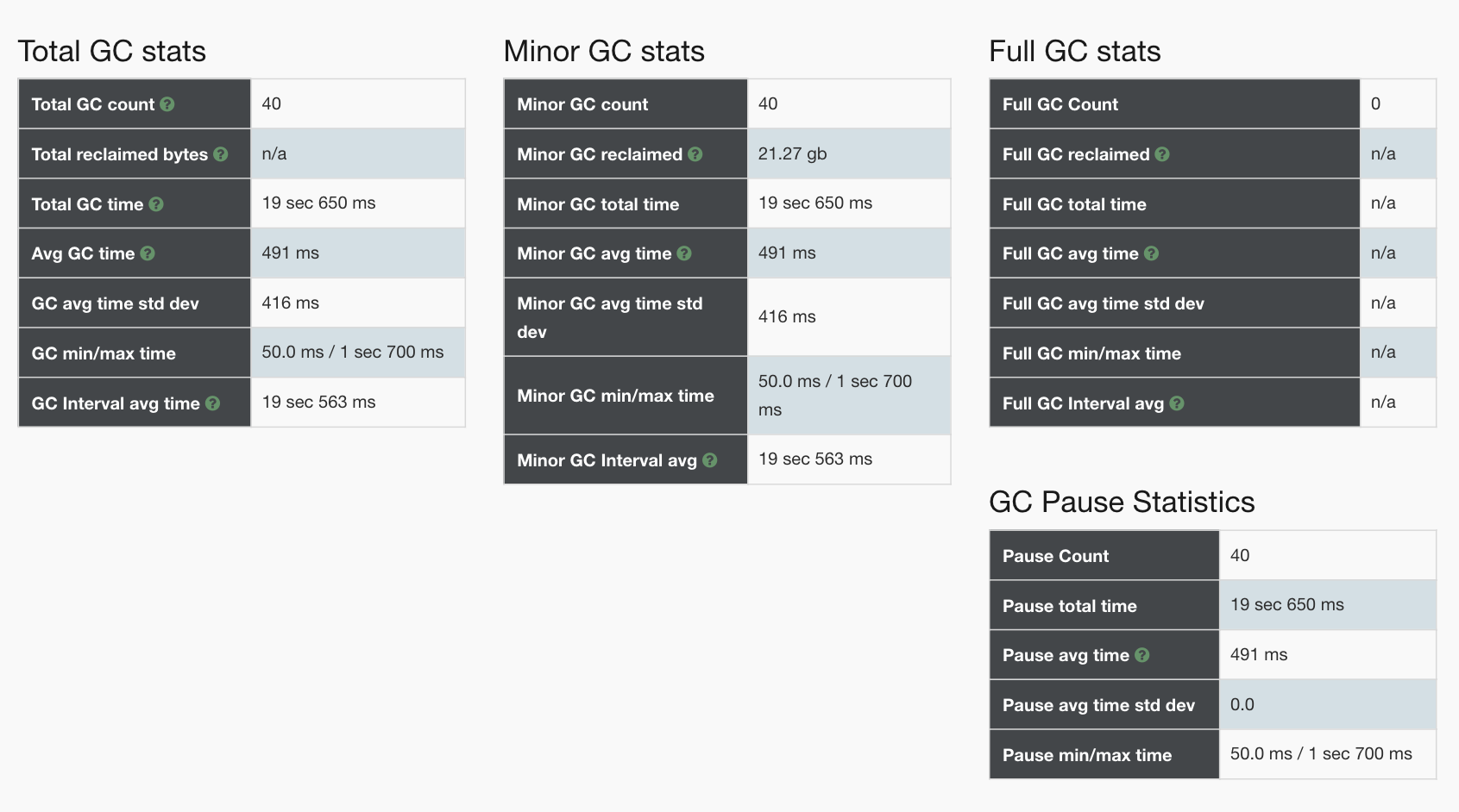 从上面的分析来看,主要是YGC在消耗响应时间。这与我们前面的分析吻合,但是我们仍旧没有找到具体的问题点。