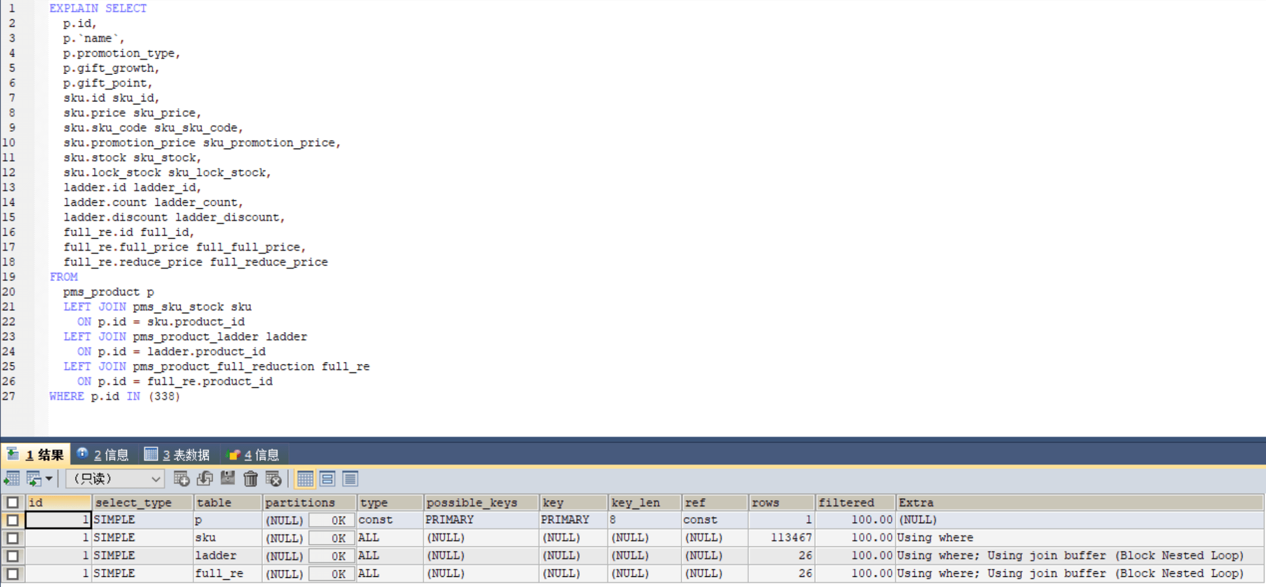 接着,我们进一步看看这个Select语句的索引: