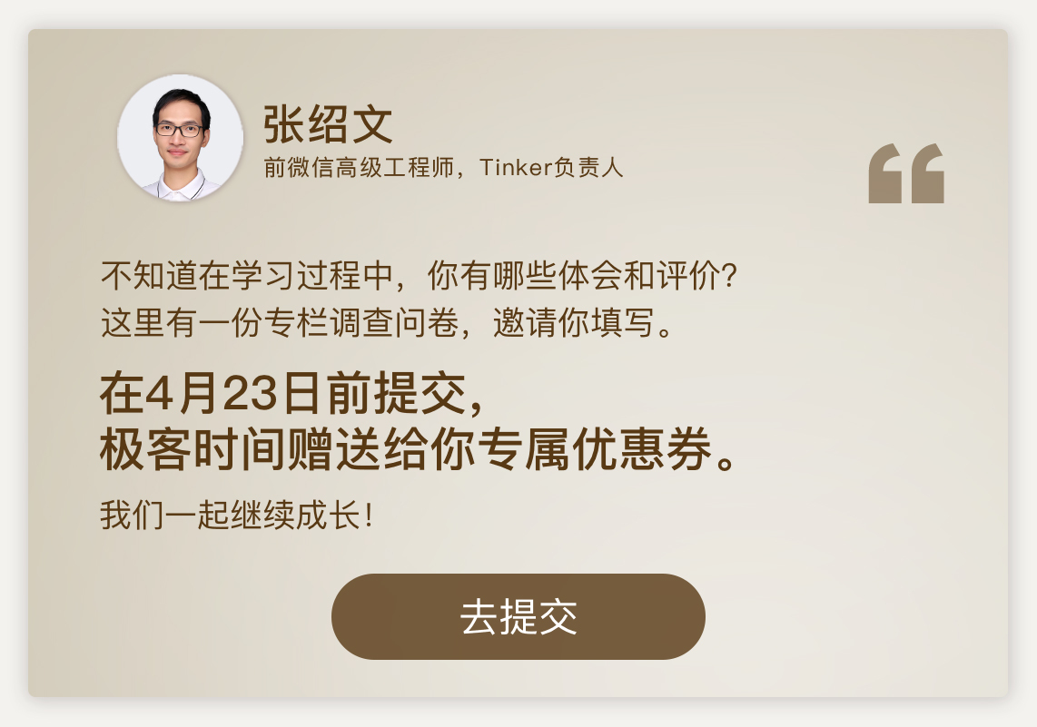 • 移动开发并不简单。想成为一名移动开发高手并不简单,它需要非常深入地学习。当然学完专栏几十篇文章,你也不可能立刻就成为了一名高手,俗话说“师傅领进门,修行靠个人”,在专栏以外你还需要进一步深入学习更多的知识,积累更丰富的经验。