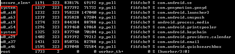 你可以看到这里的第一列,代表的是当前的用户,这里有system root和u0_axx,不同的用户有不同的权限。我们当前关注的是第二列和第三列,第二列代表的是PID,也就是进程ID;第三列代表的是PPID,也就是父进程ID。