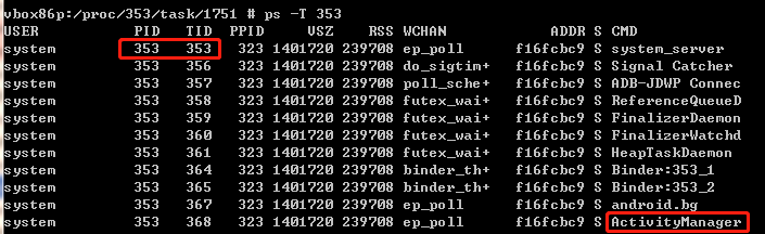 这里353是使用ps -A |grep SystemServer查出 SystemServer的进程号