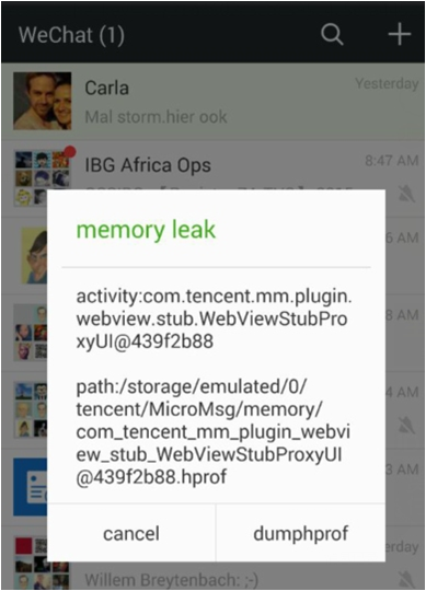 • Native内存泄漏监控。上一期我讲到Malloc调试(Malloc Debug)和Malloc钩子(Malloc Hook)似乎还不是那么稳定。在WeMobileDev最近的一篇文章《微信Android终端内存优化实践》中,微信也做了一些其他方案上面的尝试。