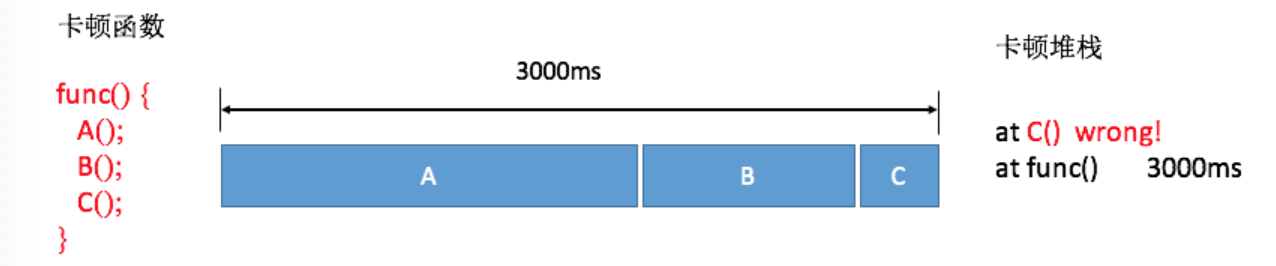 我画张图解释起来就清楚了。我们假设一个消息循环里面顺序执行了A、B、C三个函数,当整个消息执行超过3秒时,因为函数A和B已经执行完毕,我们只能得到的正在执行的函数C的堆栈,事实上它可能并不耗时。