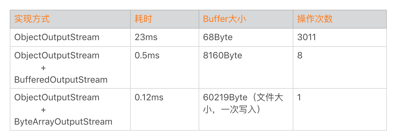 你可以看到,如果使用BufferInputStream或者ByteArrayOutputStream后整体性能会有非常明显的提升。