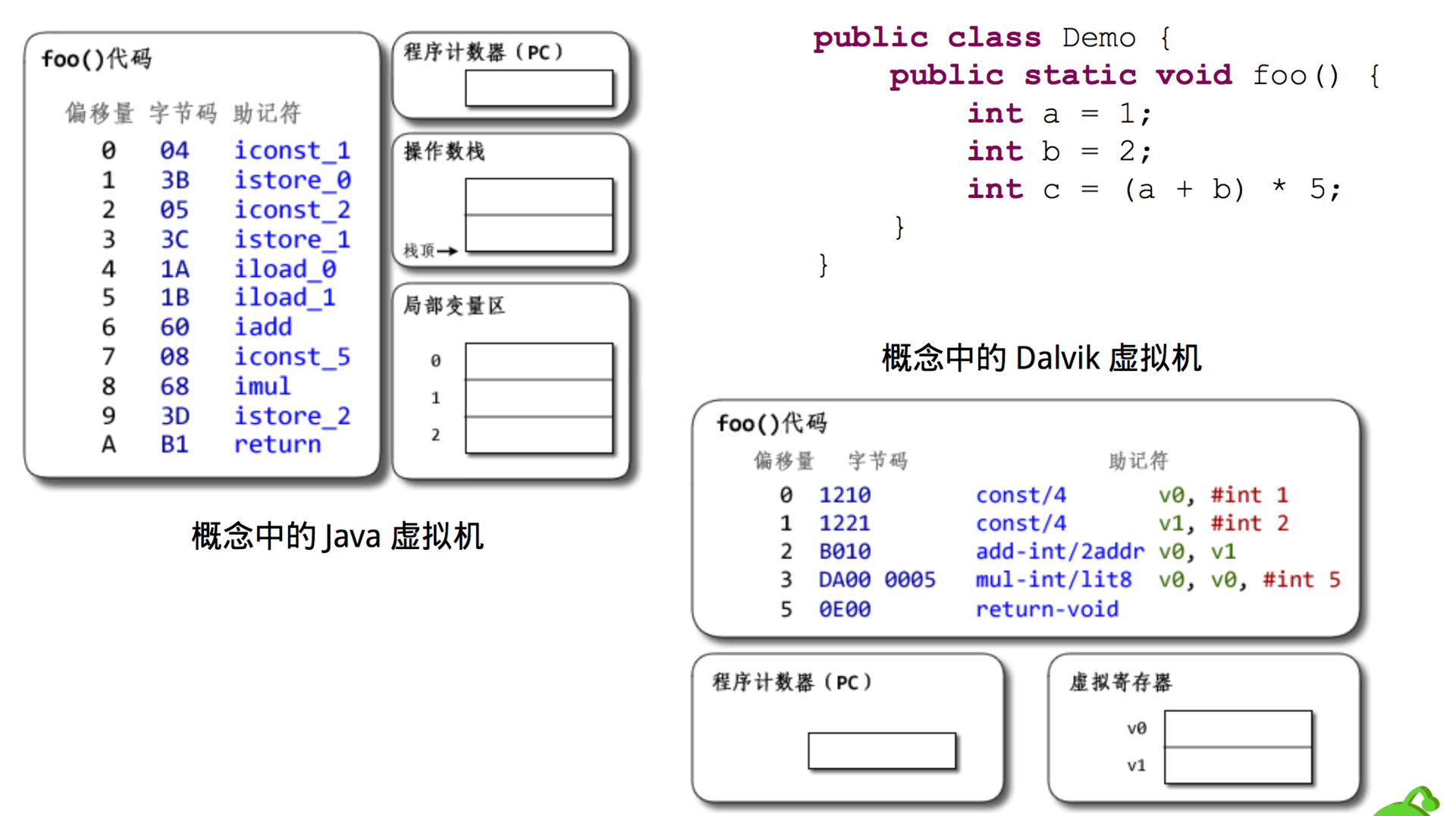 关于Java字节码和Dalvik字节码的更多介绍,你可以参考下面的资料: