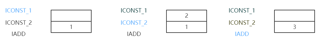 下面以一个简单的“1+2“为例,它的操作数以LIFO(后进先出)的方式进行操作。