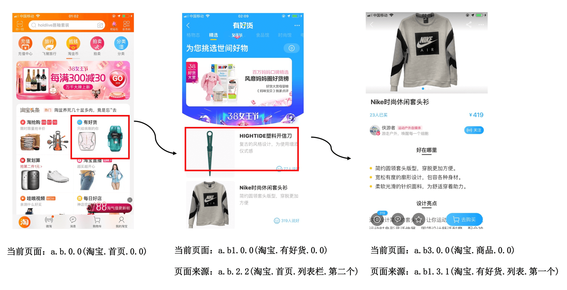 SPM主要有页面访问、控件点击以及曝光三种类型的事件,它可以用来记录了用户点击或者查看当前页面的具体信息,还可以推算出用户来自上一个页面的哪个位置。基于SPM规范,淘宝可以得到用户每个页面PV、点击率、停留时长、转化率、用户路径等各种维度的指标。