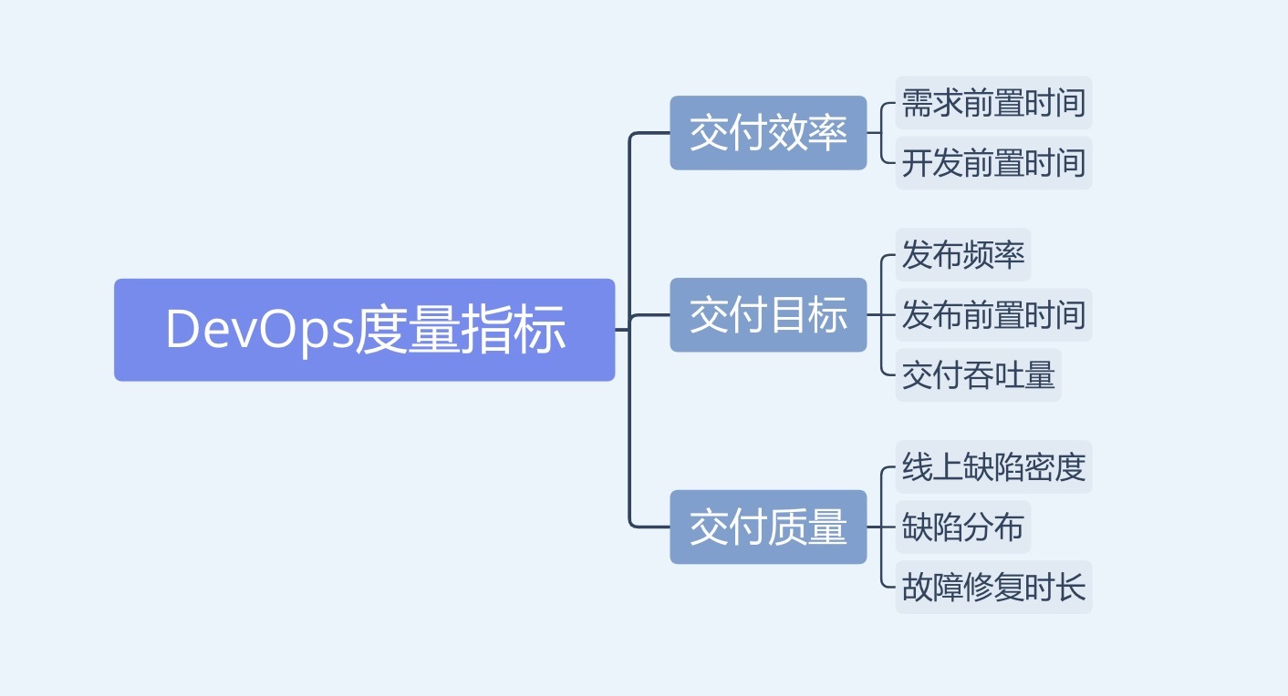 总结一下,DevOps度量想要达到的目标,就是证明团队经过一系列的改进工作,与过去相比,交付速度更快了,交付质量也更高了。所以,交付效率和交付质量是最为核心的两个目标。只有围绕这两个目标建立的度量体系,才没有走错方向。