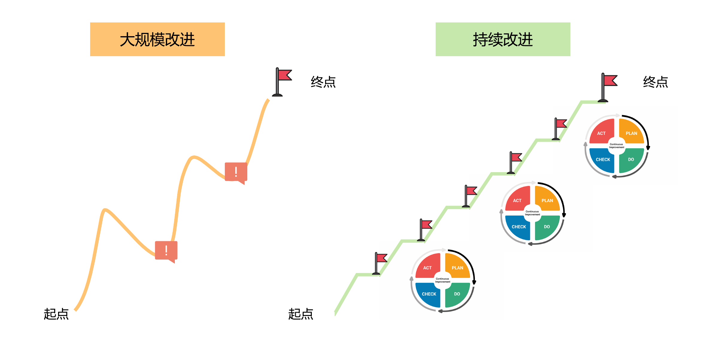 说到这儿,你可能会说,这个所谓的持续改进,怎么感觉无处不在呢?似乎很多工程实践的落地方法中,最后一步都是持续改进。那么,持续改进的意义到底是什么呢?为什么一切活动的终极目标都是持续改进呢?