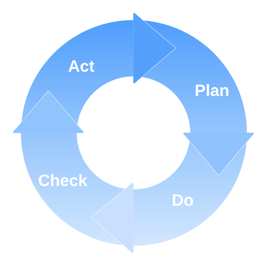 谈到持续改进,有一个非常著名的方法体系,叫作PDCA,也称为戴明环。没错,你从名称就能看出,这套方法体系同样来自于质量管理大师戴明博士。PDCA是四个英文单词的缩写,也就是Plan(计划)、Do(实施)、Check(检查)和Action(行动)。