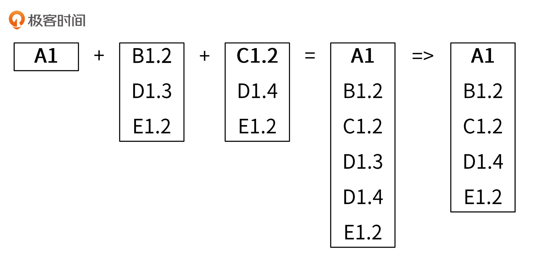 上图中,rough list和final list的区别在于重复引用的模块 D(v1.3、v1.4),最终清单选用了D的v1.4版本。