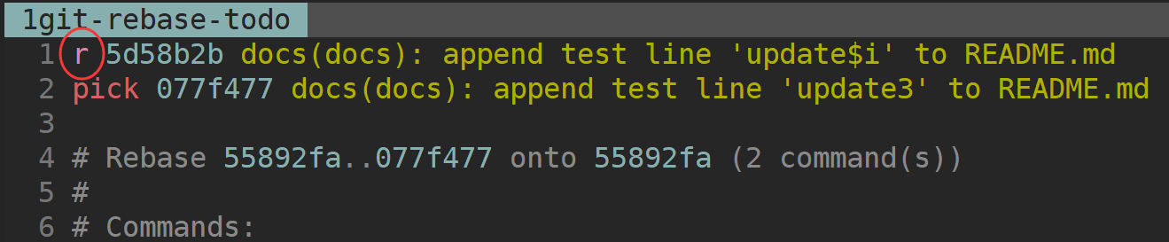 #开头的行是 git 的注释,我们可以忽略掉,在 rebase 后,这些行将会消失掉。修改完成后执行:wq 保存,就完成了合并提交操作。