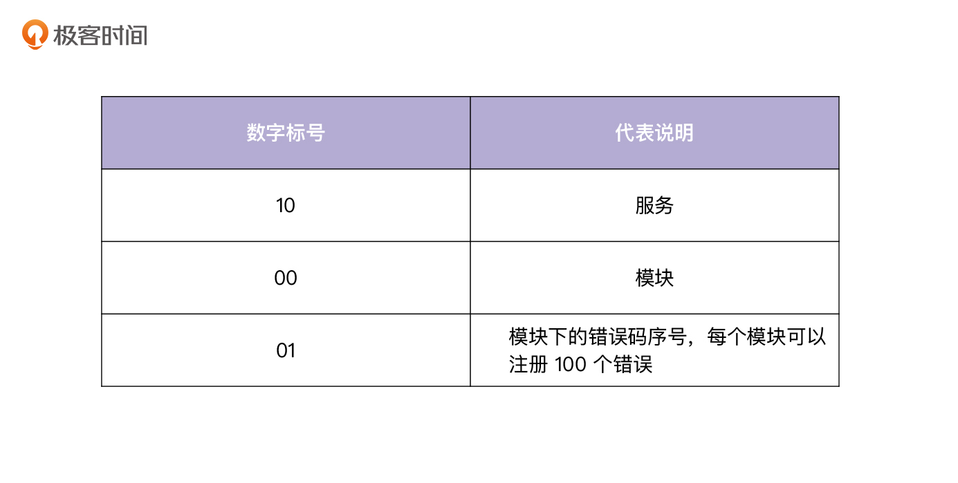 你可能会问:按这种设计,每个模块下最多能注册100个错误,是不是有点少?其实在我看来,如果每个模块的错误码超过100个,要么说明这个模块太大了,建议拆分;要么说明错误码设计得不合理,共享性差,需要重新设计。