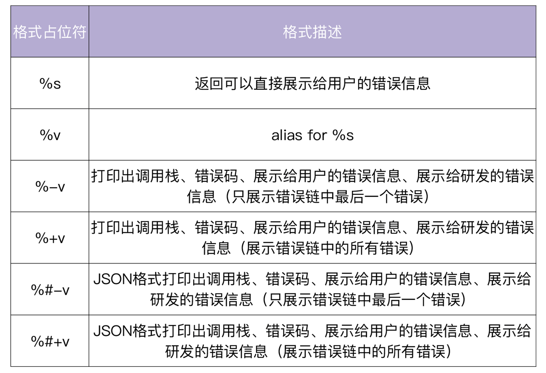 其次,能够支持不同的打印格式。例如%+v%v%s等格式,可以根据需要打印不同丰富度的错误信息。