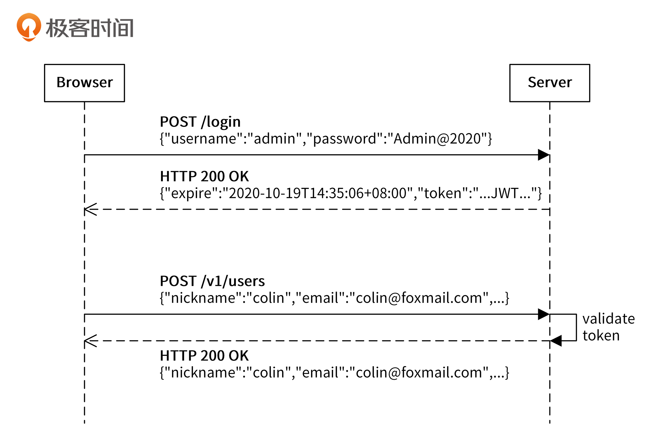 在典型业务场景中,为了区分用户和保证安全,必须对 API 请求进行鉴权,但是不能要求每一个请求都进行登录操作。合理做法是,在第一次登录之后产生一个有一定有效期的 token,并将它存储在浏览器的 Cookie 或 LocalStorage 之中。之后的请求都携带这个 token ,请求到达服务器端后,服务器端用这个 token 对请求进行认证。在第一次登录之后,服务器会将这个 token 用文件、数据库或缓存服务器等方法存下来,用于之后请求中的比对。
