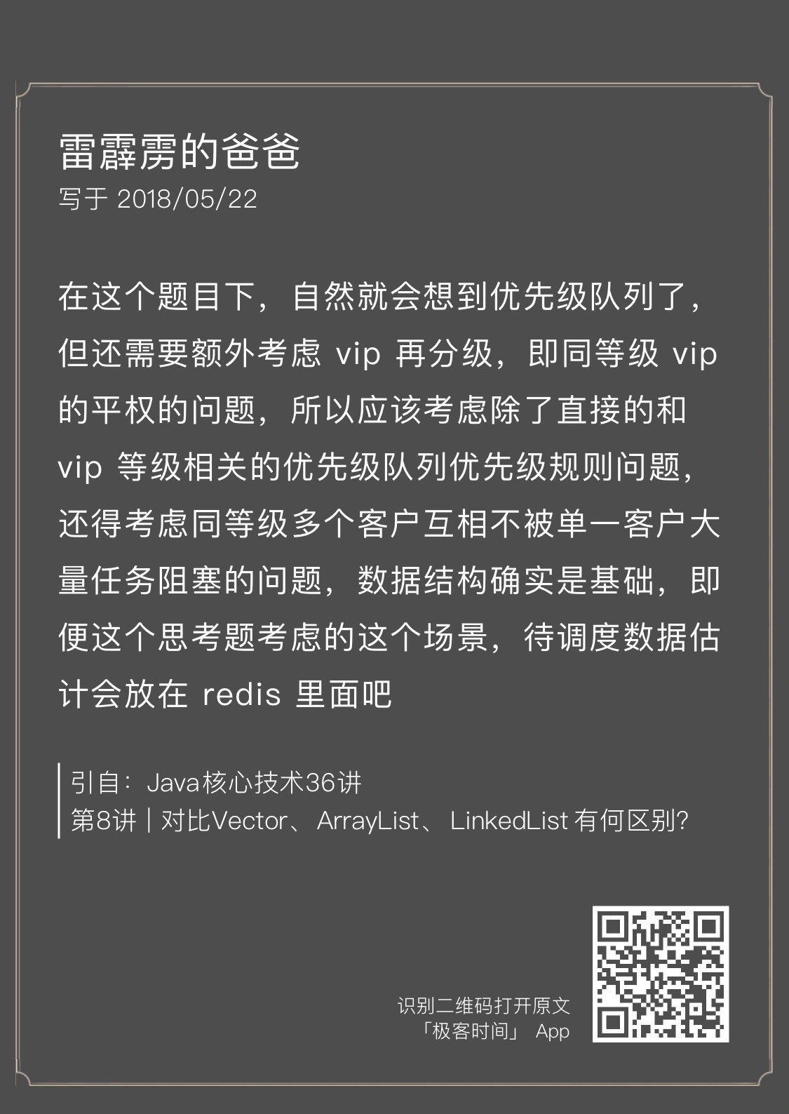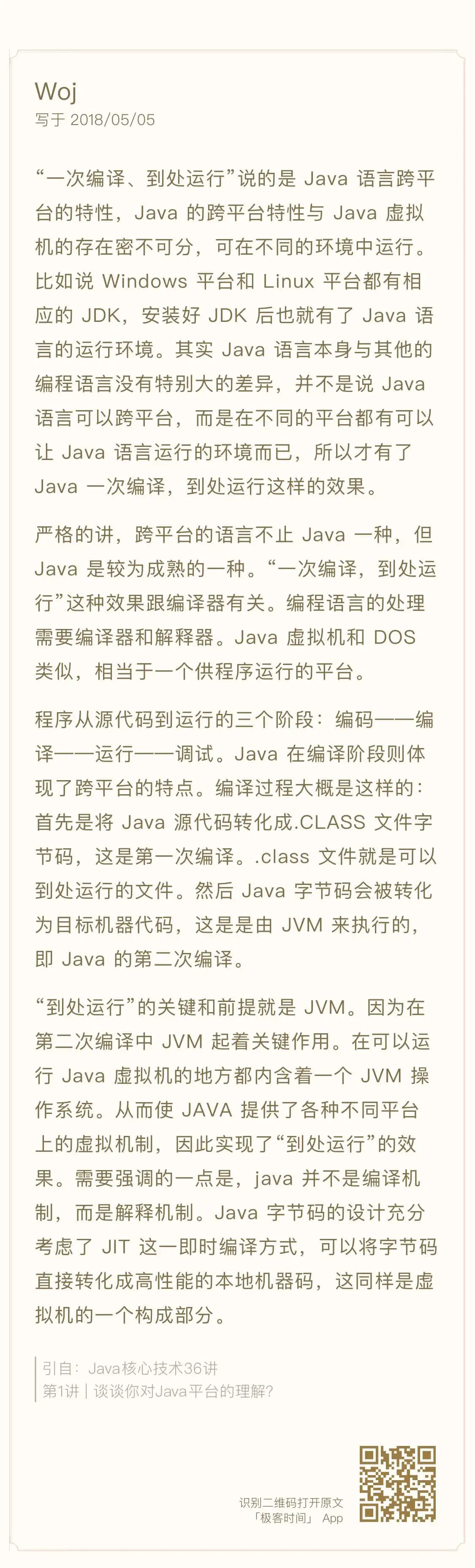你好,我是杨晓峰。今天是周末,我们稍微放松一下来聊聊“Java 核心技术”之外的内容,正好也借这个机会,兑现一下送出学习奖励礼券的承诺。我在每一讲后面都留下了一道思考题,希望你通过学习,结合自身工作实际,能够认真思考一下这些问题,一方面起到检验学习效果的作用,另一方面可以查漏补缺,思考一下这些平时容易被忽略的面试考察点。我并没有给出这些思考题的答案,希望你通过专栏学习或者查阅其他资料进行独立思考,将自己思考的答案写在留言区与我和其他同学一起交流,这也是提升自己重要的方法之一。