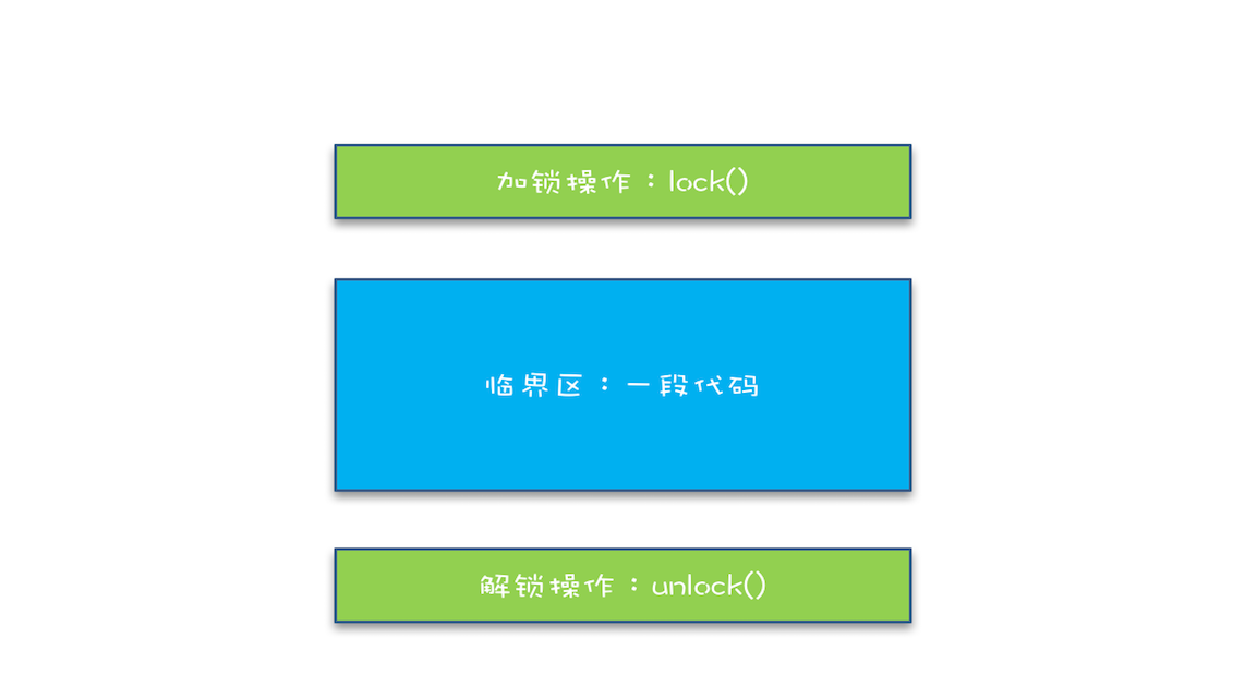 我们把一段需要互斥执行的代码称为临界区。线程在进入临界区之前,首先尝试加锁lock(),如果成功,则进入临界区,此时我们称这个线程持有锁;否则呢就等待,直到持有锁的线程解锁;持有锁的线程执行完临界区的代码后,执行解锁unlock()。