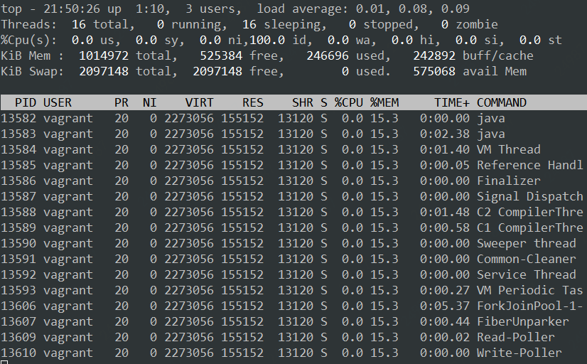 如果你通过Linux命令 top -Hp pid 查看Fiber实现的echo程序的进程信息,你可以看到该进程仅仅创建了16(不同CPU核数结果会不同)个操作系统线程。