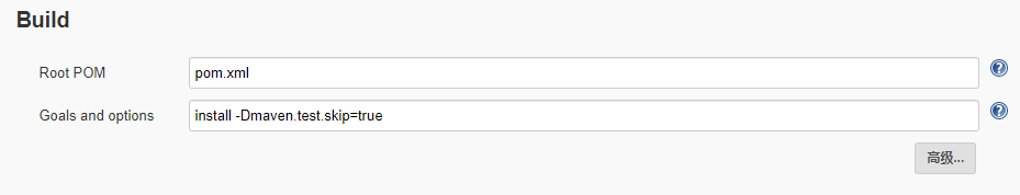 在maven类型的项目配置中,只需要配上图中列出的这两项即可,对于”Root Pom“的设置,同样以当前(${WORKSPACE})路径(Jenkins工作路径)作为基本路径,只写pom.xml就代表项目的根目录下的pom.xml文件。