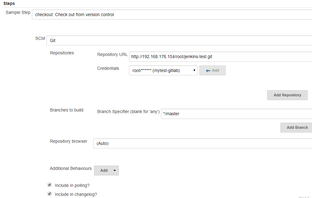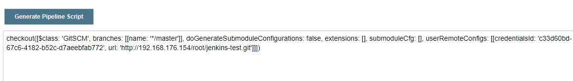 根据需要配置好必须项,点击下方的Generate Pipeline Script就会生成相应的代码片段