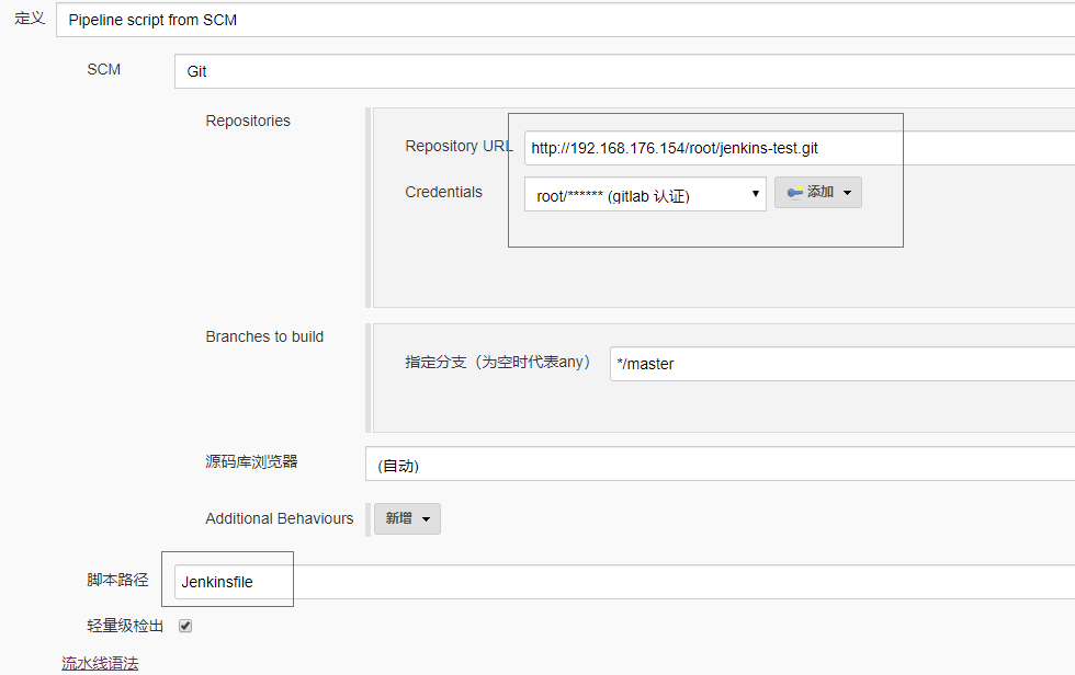 比如在定义流水线脚本使用方式时使用Pipeline Script的方式配置