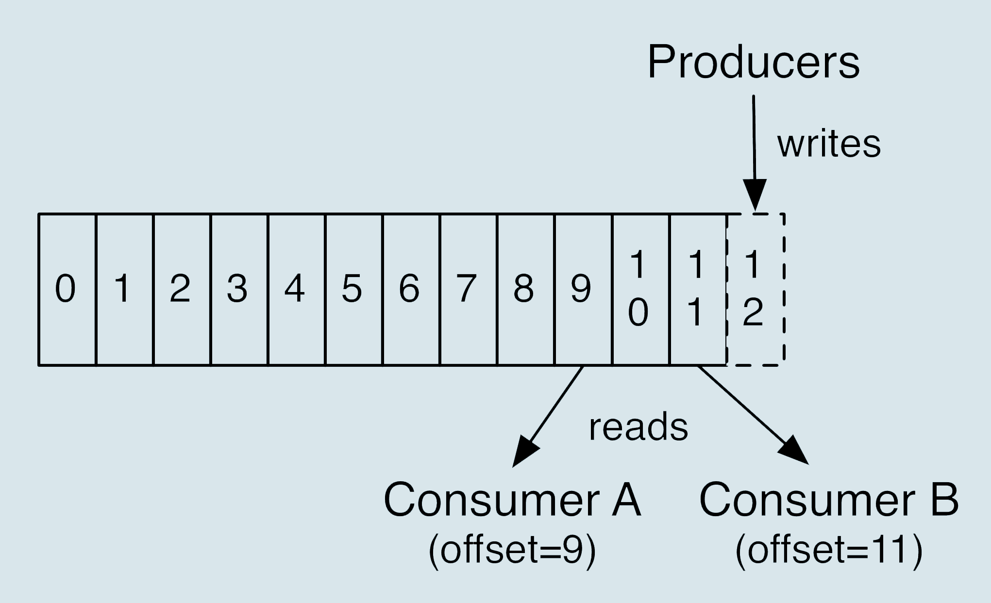 Consumer端丢失数据主要体现在Consumer端要消费的消息不见了。Consumer程序有个“位移”的概念,表示的是这个Consumer当前消费到的Topic分区的位置。下面这张图来自于官网,它清晰地展示了Consumer端的位移数据。