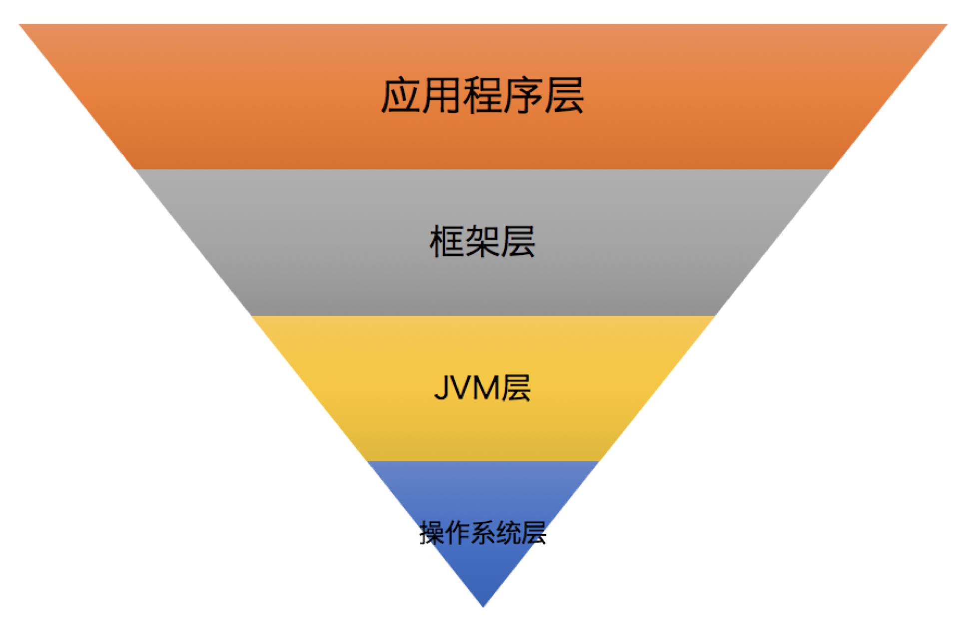 优化漏斗是一个调优过程中的分层漏斗,我们可以在每一层上执行相应的优化调整。总体来说,层级越靠上,其调优的效果越明显,整体优化效果是自上而下衰减的,如下图所示: