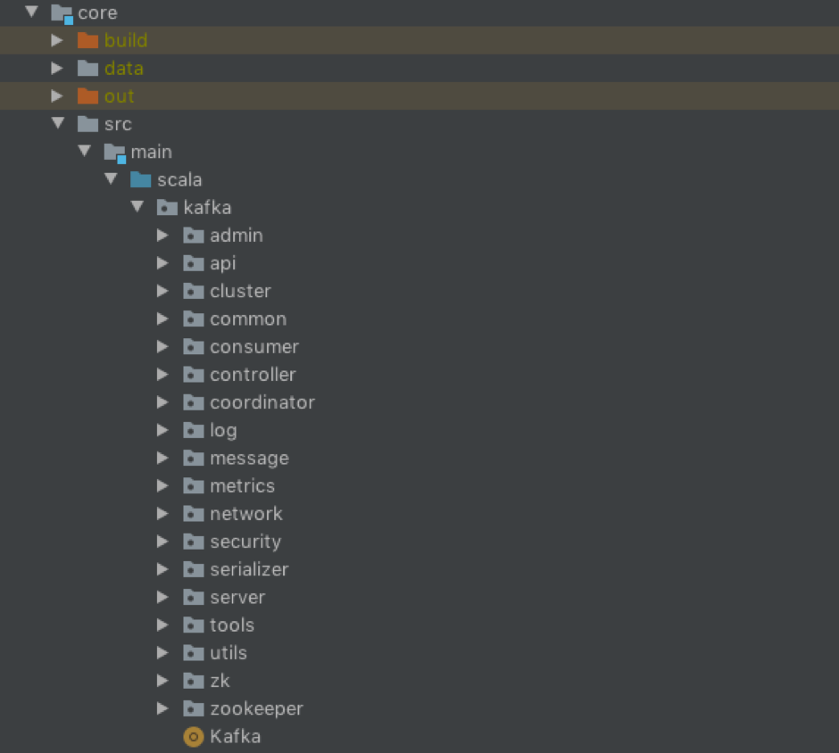 • core目录:保存Broker端代码。Kafka服务器端代码全部保存在该目录下。