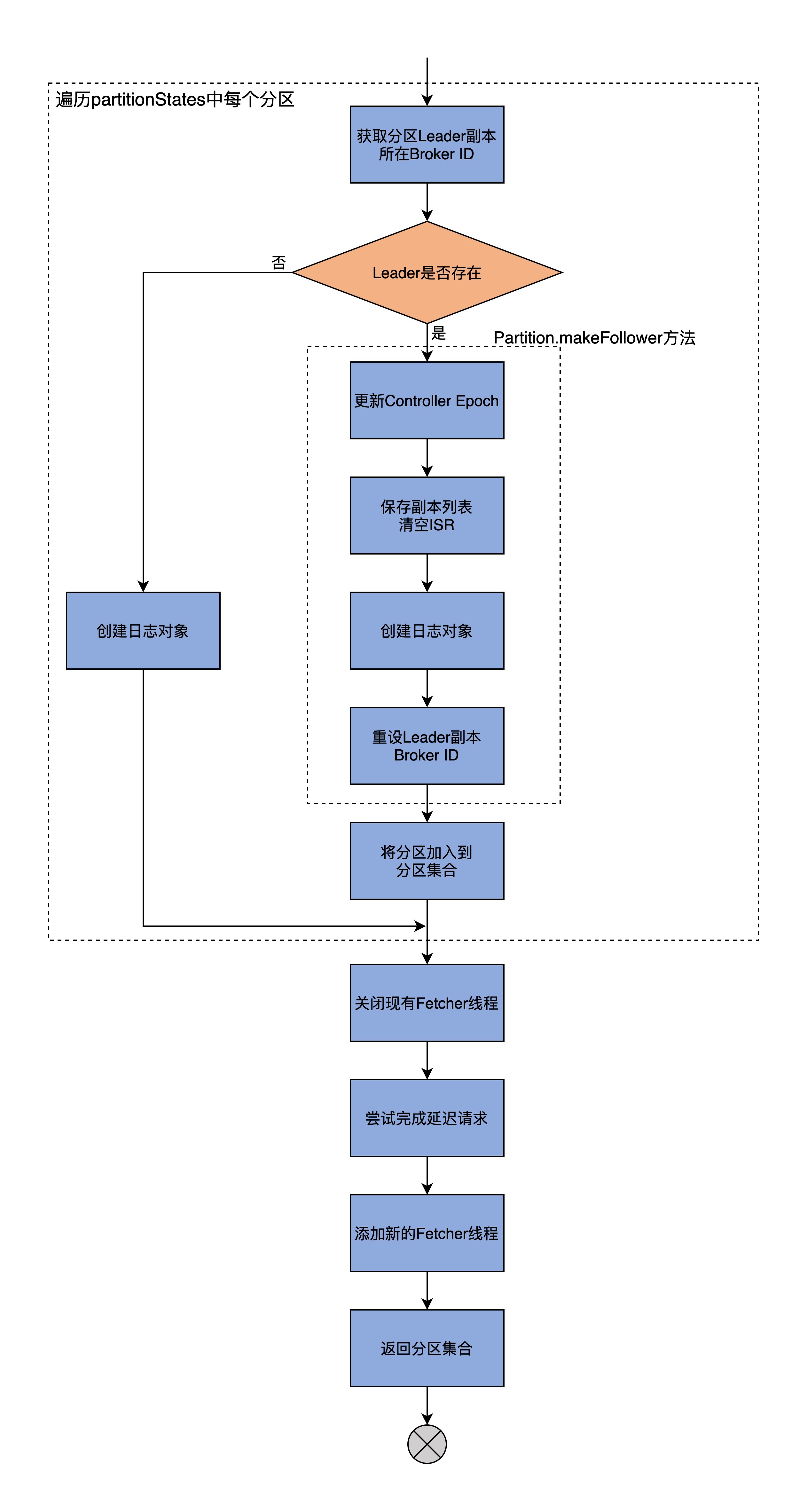 最后,如果有分区的本地日志为空,说明底层的日志路径不可用,那么标记该分区为Offline状态。所谓的标记为Offline状态,主要是两步:第1步是更新allPartitions中分区的状态;第2步是移除对应分区的监控指标。