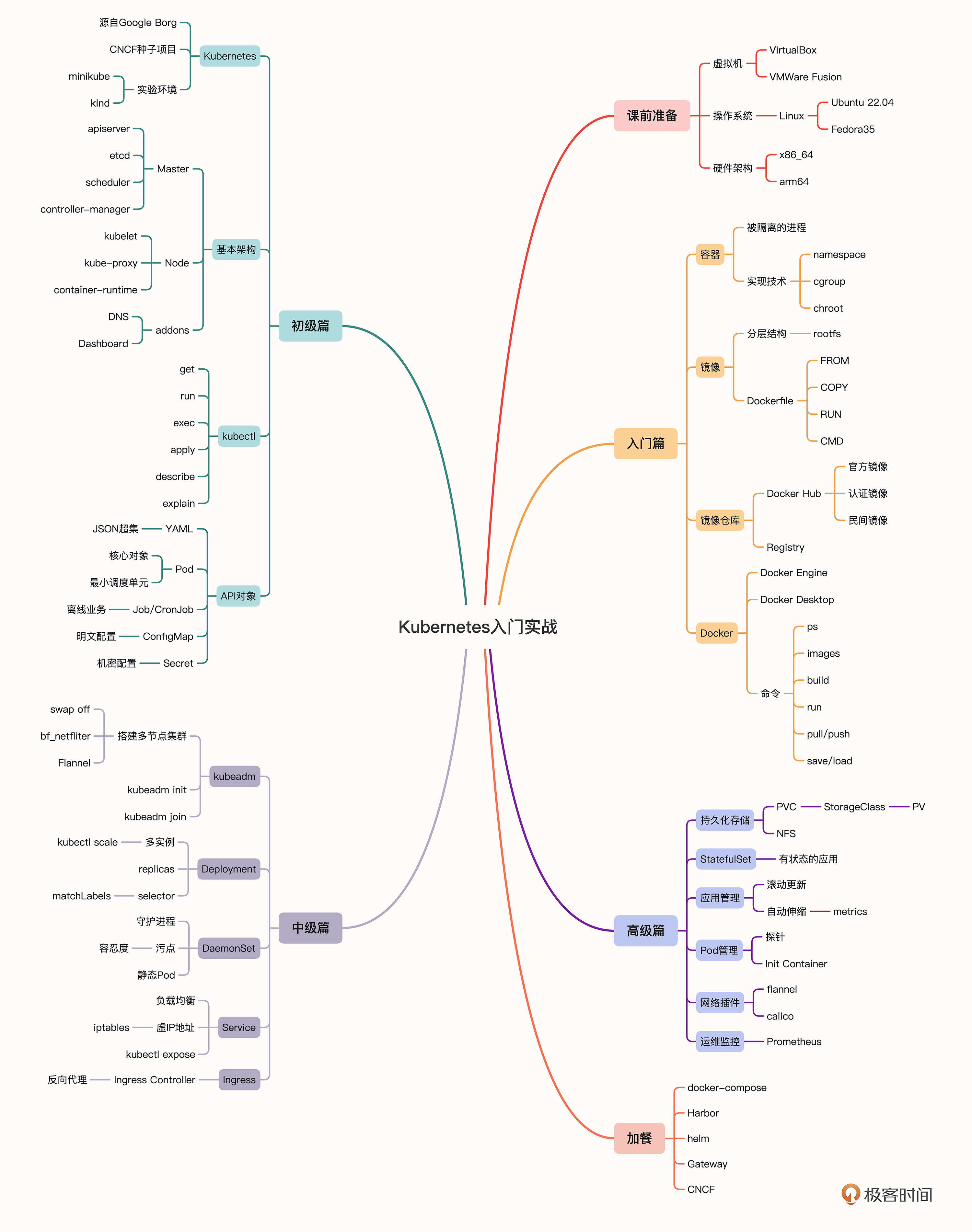 你的Kubernetes之旅马上就要开始了,我再送你一张课程的知识地图,希望你能够在今后的三个月里以它为伴,用努力与坚持去浇灌学习之花,收获丰硕的知识和喜悦之果!-