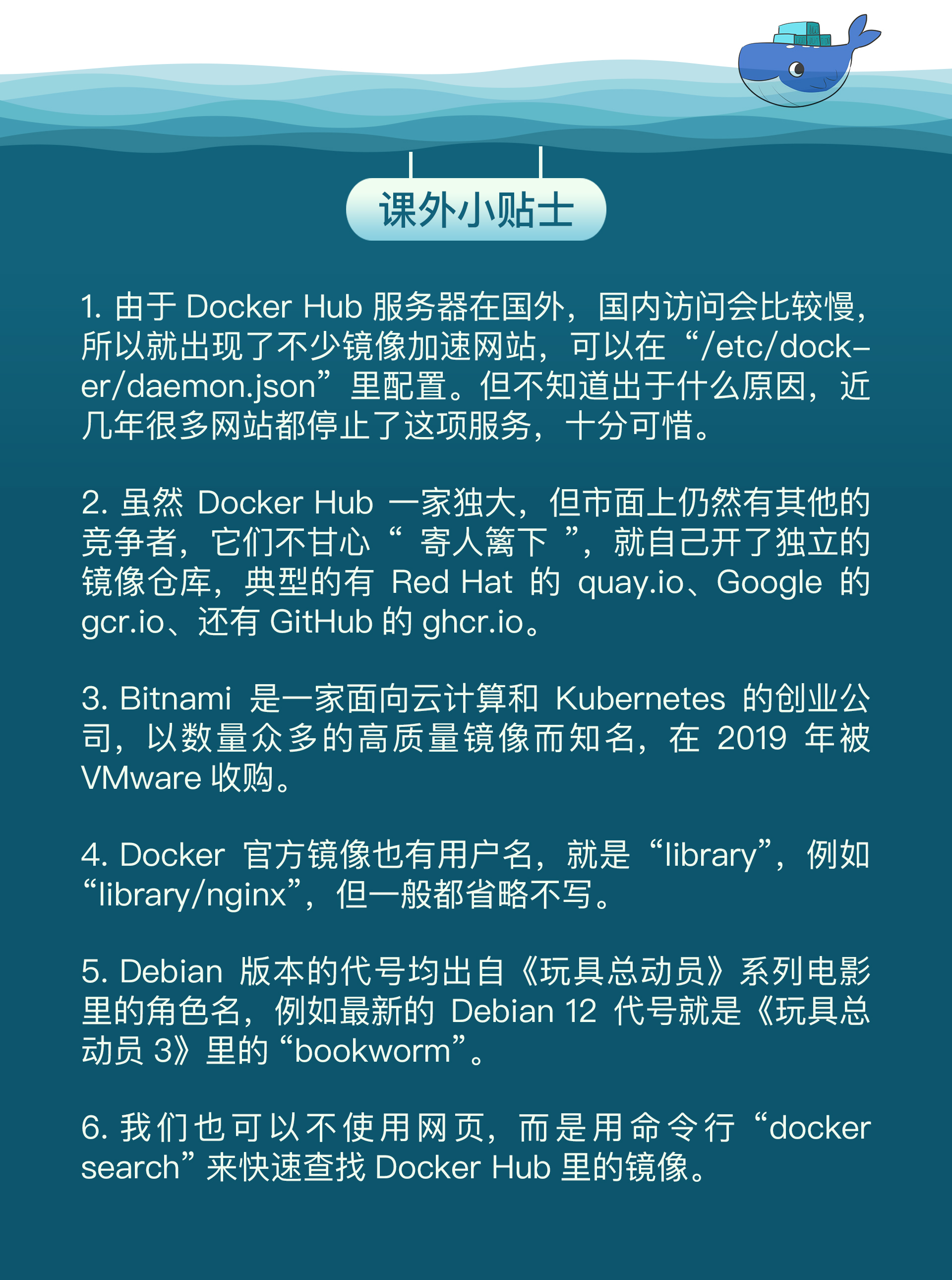 直接使用默认的“latest”虽然简单方便,但在生产环境里是一种非常不负责任的做法,会导致版本不可控。所以我们还需要理解Docker Hub上标签命名的含义,才能够挑选出最适合我们自己的镜像版本。